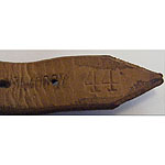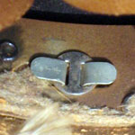 Las dos piezas del barboquejo se sujetan con pequeños diávolos. Frecuentemente se hallan sellos de fabricantes en el extremo de la pieza mayor.