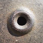 La cabeza abombada de los remaches originales contrastan con las más planas de los nuevos.